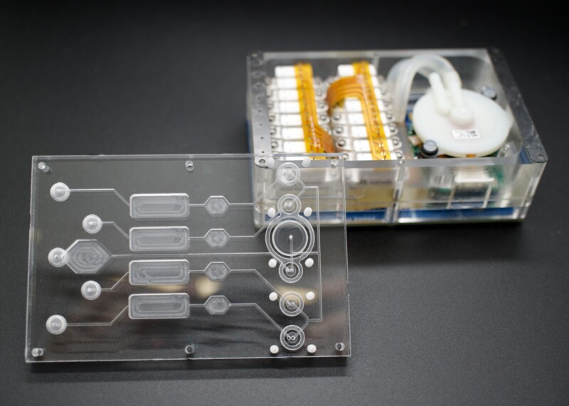 在體外診斷(In-Vitro Diagnostics; IVD)中,試劑加入、混合、反應與量測皆需精確時序。主動流體控制可實現這些流程的自動化,使檢測快速且穩定。透過外部驅動模組控制微流體匣內的閥門與泵浦,不僅能提升精準度,還能讓驅動部件重複使用、降低交叉污染風險,並讓微流體匣成為一次性耗材。小型化挑戰與新技術突破